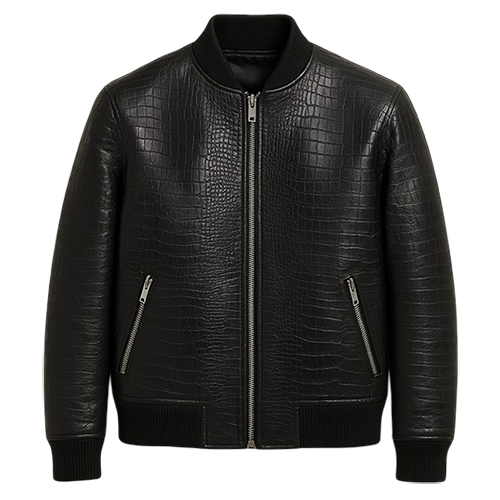 Upgrade your everyday style with this Black Premium Croc Bomber Leather Jacket, a versatile piece crafted to pair effortlessly with any outfit. Made from 100% real leather with a subtle croc-embossed texture, it offers long-lasting durability, natural warmth, and a refined modern look. The breathable polyester lining keeps you comfortable, while the bomber-style rib-knits ensure a snug, stylish fit. With multiple pockets for convenience, this jacket is built for both function and fashion perfect for daily wear.